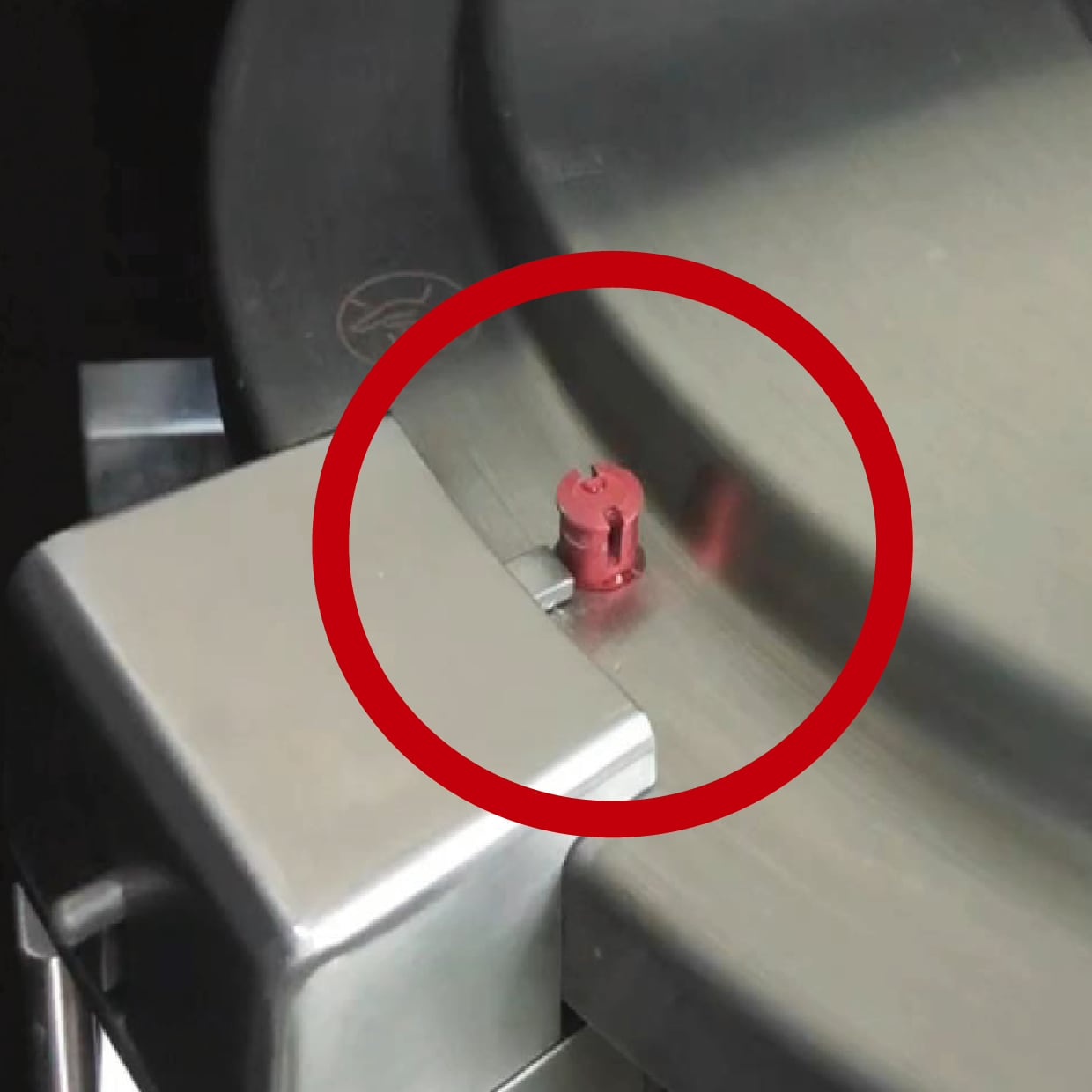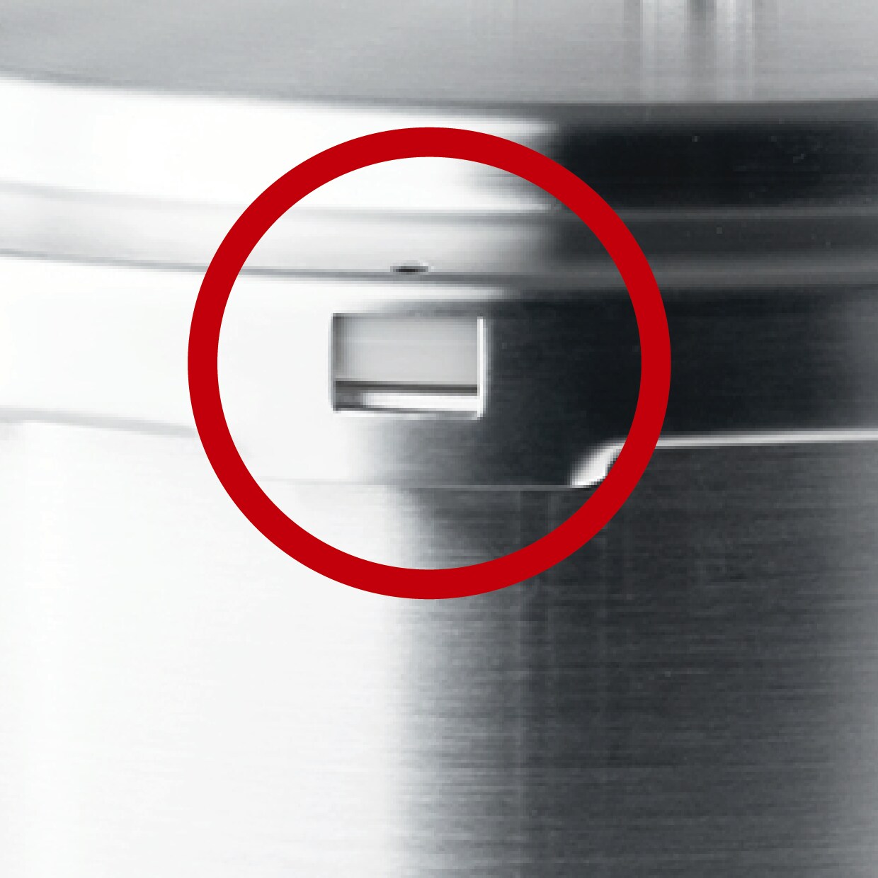 再搭配紅色的「有壓指示&有壓止開總成」,在鍋內有壓力時便會升起,與蓋把部分互成一個鎖,並鎖住鍋蓋!當鍋內完全無壓力,鍋蓋才能打開。